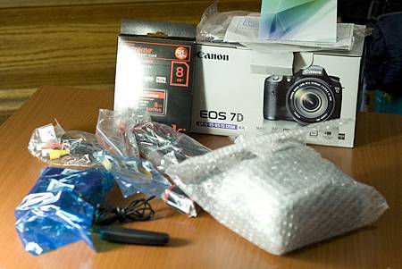 我再開,記憶卡的盒子和被包覆的7D機身出現囉~