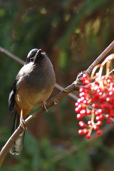 白耳畫眉很愛吃,而且通常都是一群 又很大一隻 算很好拍
