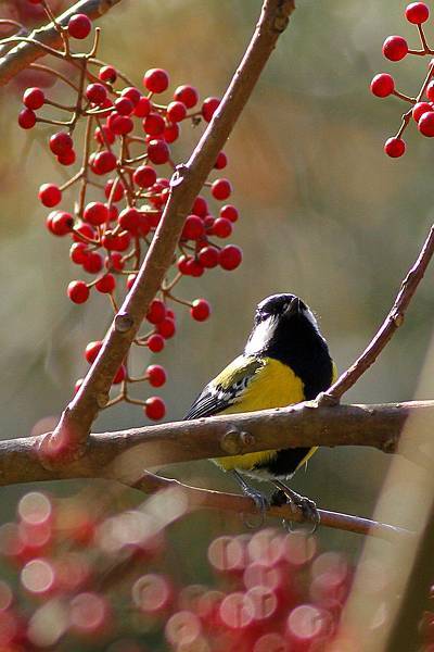 過了一下子,在一群黃腹琉璃中,出現了一隻小巧的黃山雀!!!
